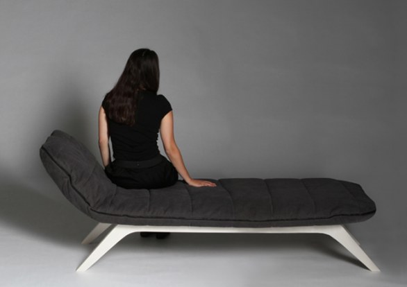 “Couch Sleeper” is – as the name suggests unequivocally – a sofa chaise longue seemingly simple and minimal. Along padded lining and a white wooden frame. The surprise is pulling the zip: stuffing turns out to be a quilt-mattress where introduced as a cocoon. Still no word about marketing.